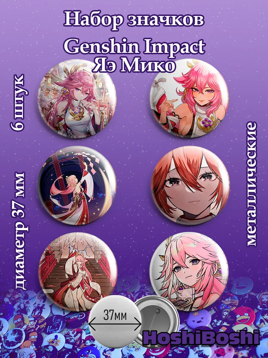 Набор из 6 металлических значков с изображениями из игры Геншин Импакт ( Genshin Impact ).