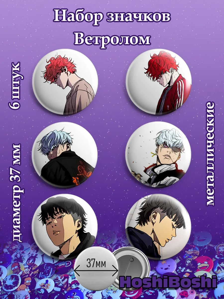 Набор из 6 металлических значков с изображениями из манхвы Ветролом ( Wind Breaker ).
