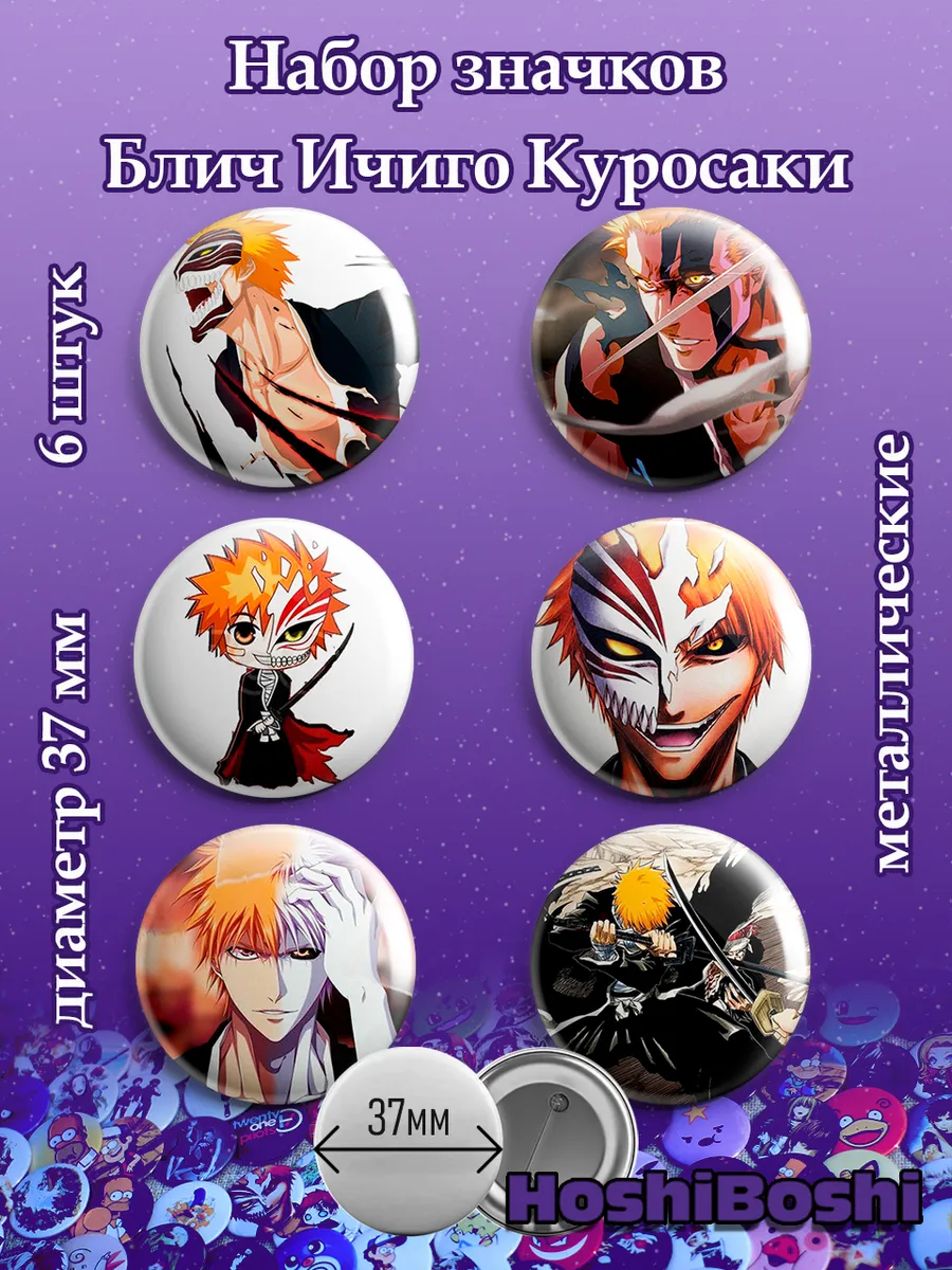 Набор из 6 металлических значков с изображениями из аниме Блич ( Bleach ).