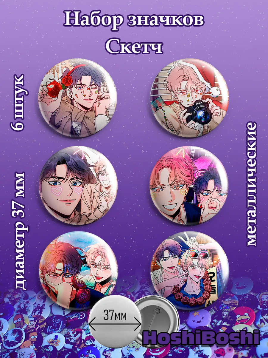Набор из 6 металлических значков с изображениями из манхвы Скетч ( Sketch ).