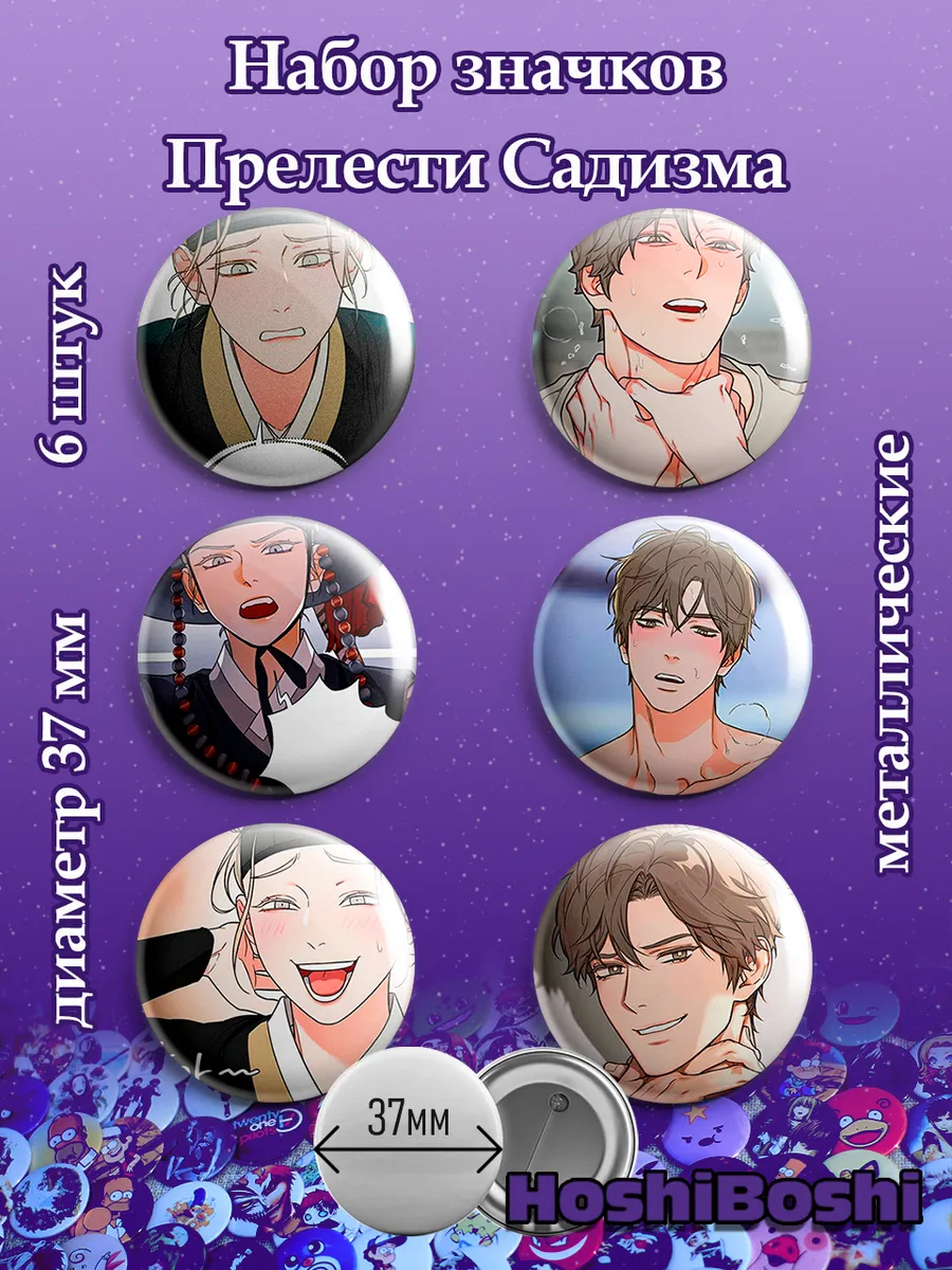Набор из 6 металлических значков с изображениями из манхвы Прелести садизма ( Sadistic Beauty ).