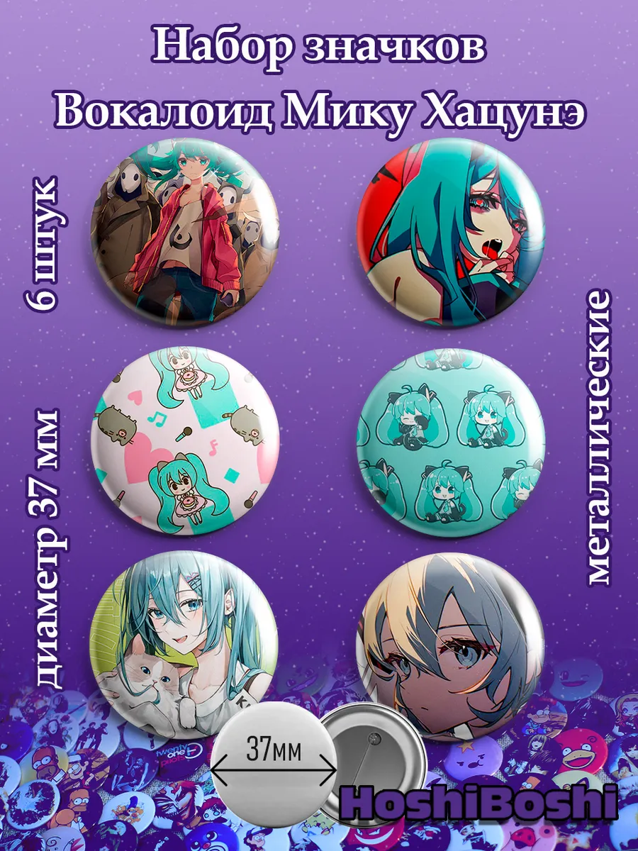 Набор из 6 металлических значков с изображениями Вокалоидов ( Vocaloid ).