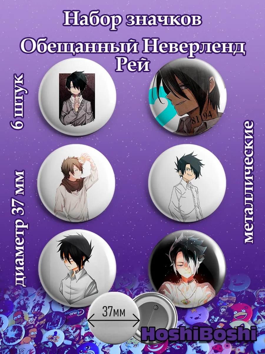 Набор из 6 металлических значков с изображениями из аниме Обещанный Неверленд ( The Promised Neverland ).