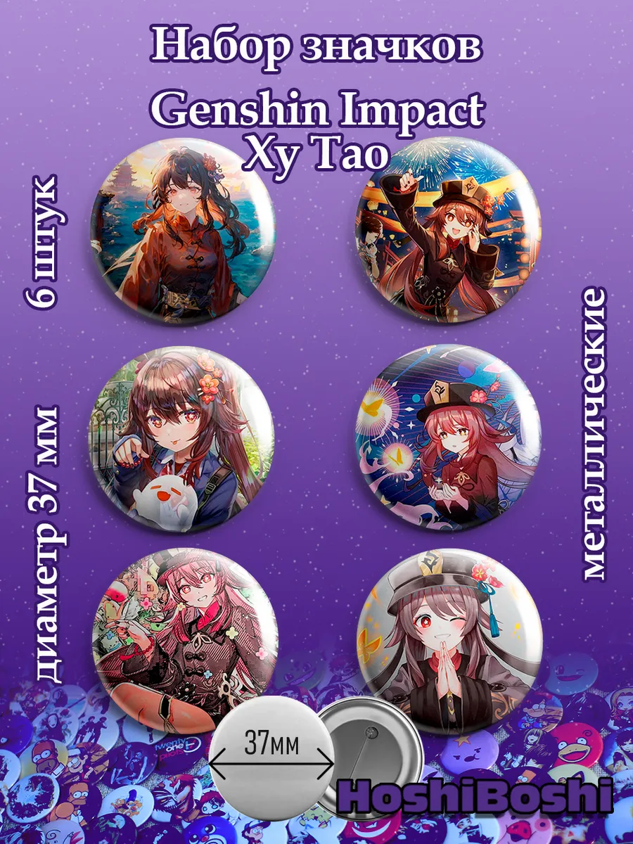 Набор из 6 металлических значков с изображениями из игры Геншин Импакт ( Genshin Impact ).