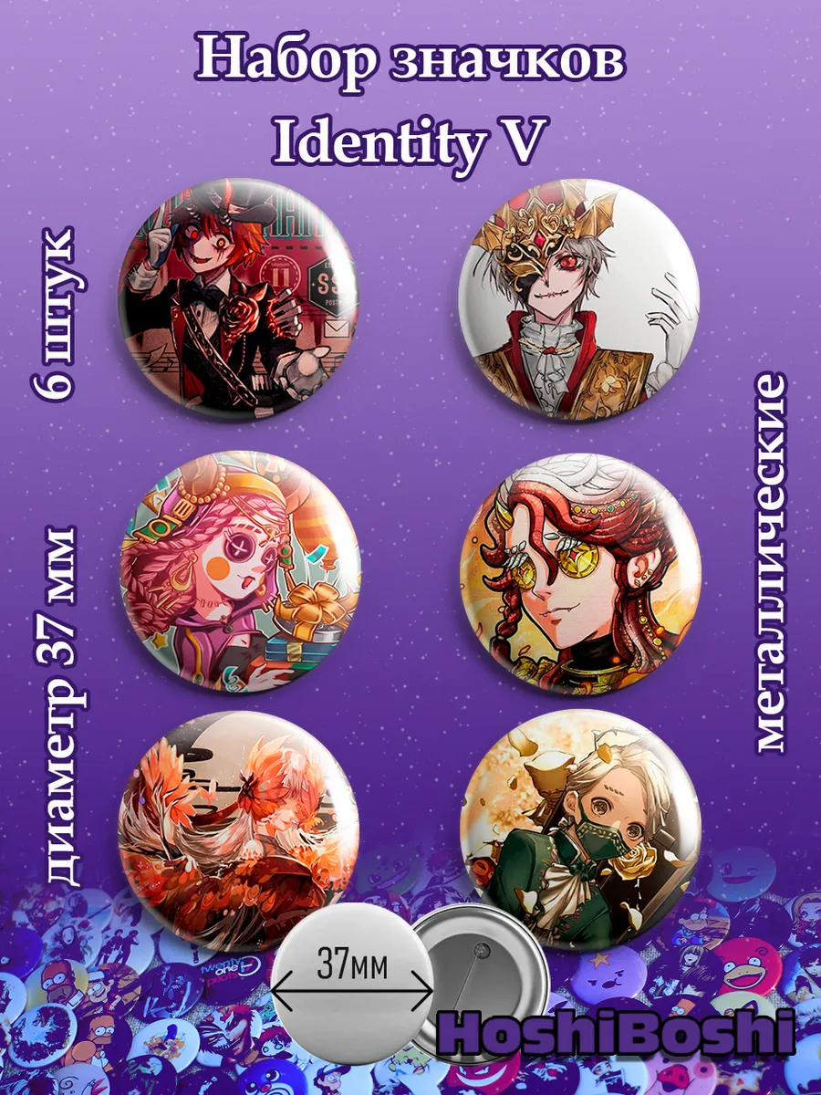 Набор из 6 металлических значков с изображениями из игры Идентити Файф ( Identity V ).