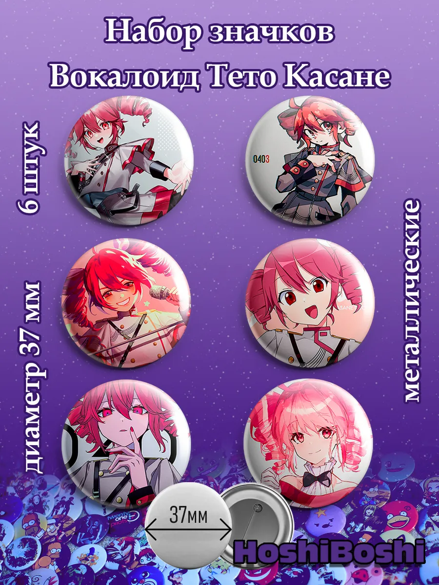 Набор из 6 металлических значков с изображениями Вокалоидов ( Vocaloid ).