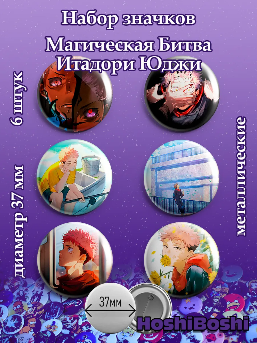 Набор из 6 металлических значков с изображениями из аниме Магическая Битва ( Jujutsu Kaisen ).