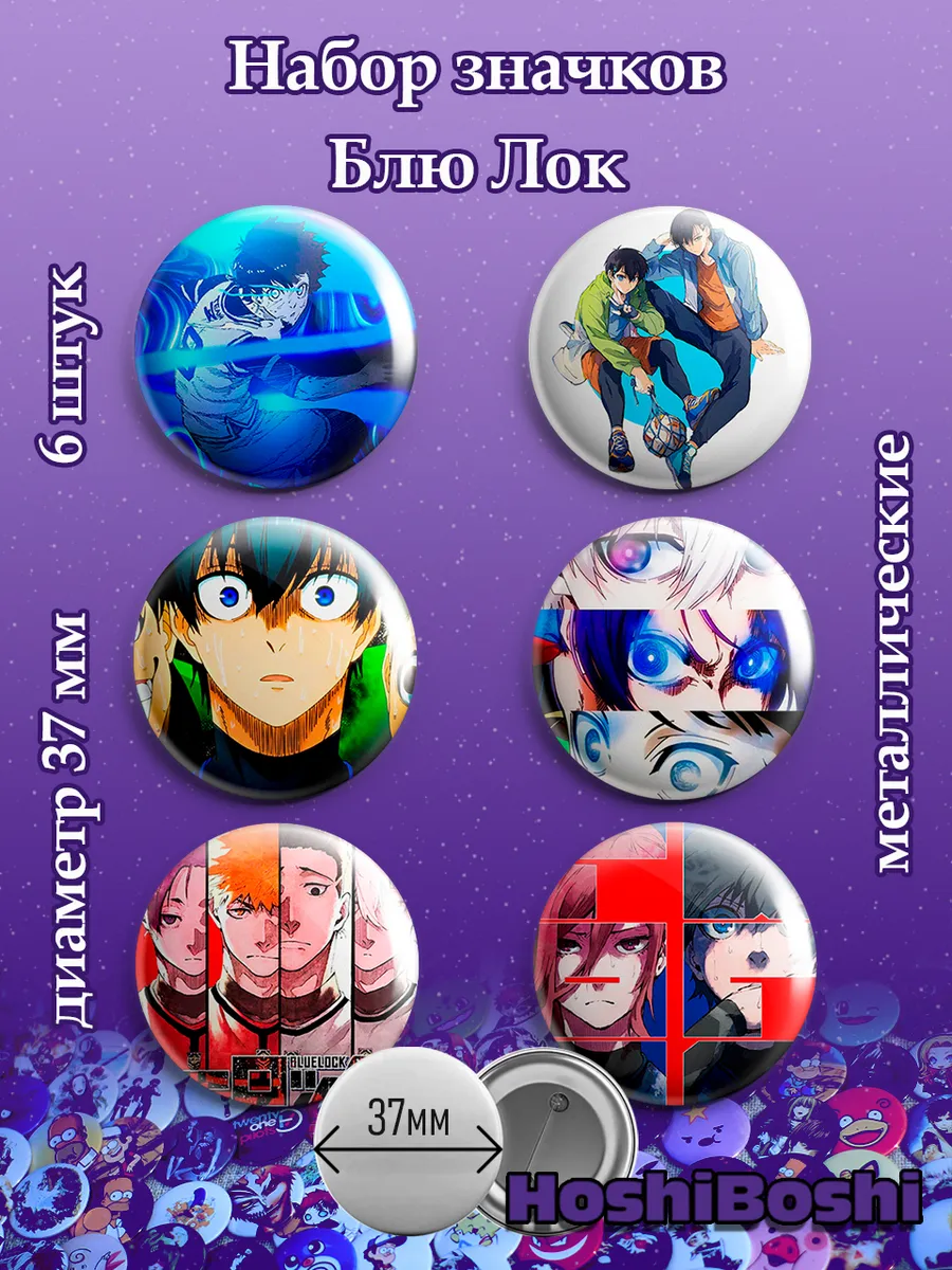 Набор из 6 металлических значков с изображениями из аниме Блю Лок ( Blue Lock ).