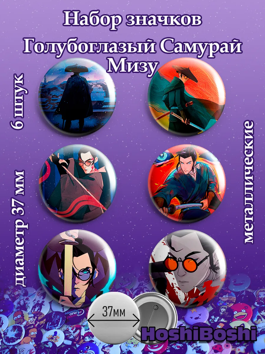 Набор из 6 металлических значков с изображениями из мультсериала Голубоглазый самурай ( Blue Eye Samurai ).