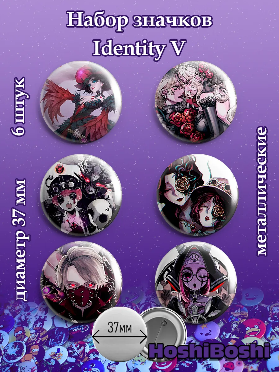 Набор из 6 металлических значков с изображениями из игры Идентити Файф ( Identity V ).