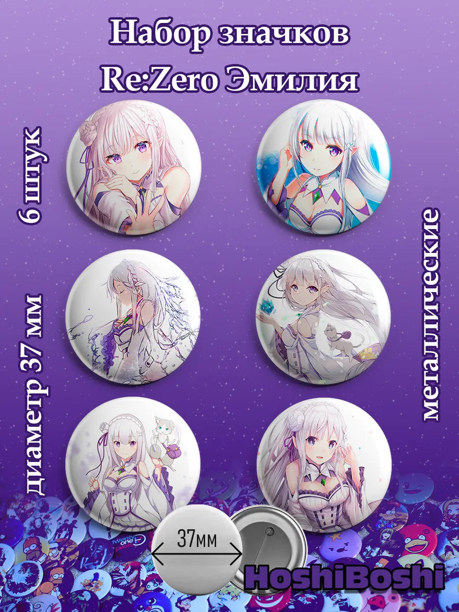Набор из 6 металлических значков с изображениями из аниме Жизнь в альтернативном мире с нуля Резеро ( Re: Zero ).