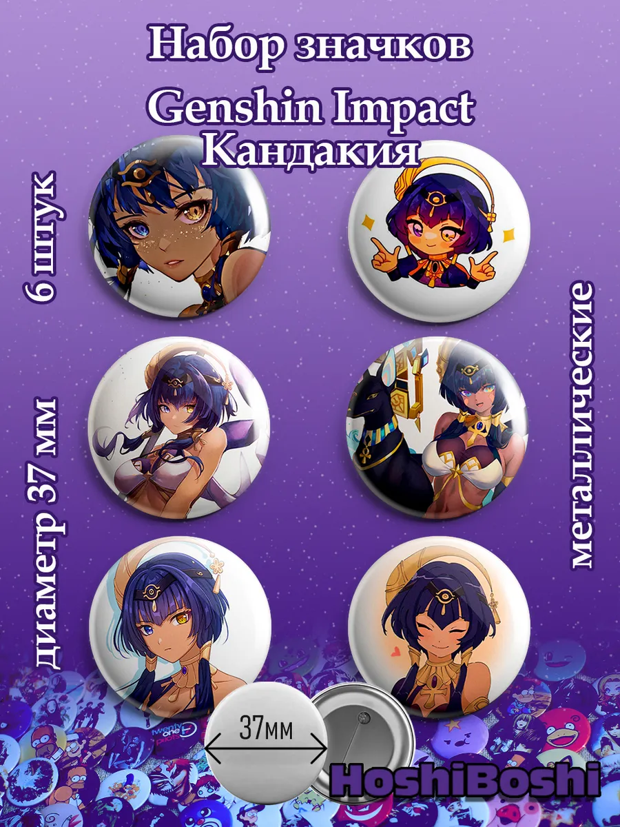 Набор из 6 металлических значков с изображениями из игры Геншин Импакт ( Genshin Impact ).