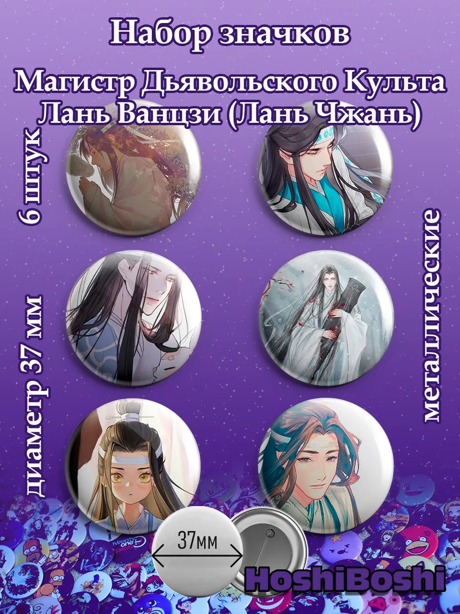Набор из 6 металлических значков с изображениями из аниме Магистр Дьявольского Культа ( Mo Dao Zu Shi ).