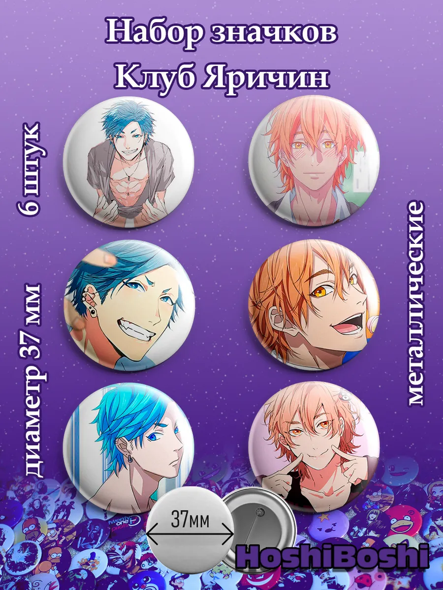 Набор из 6 металлических значков с изображениями из аниме Клуб Яричин ( Yarichin Bitchi-bu ).