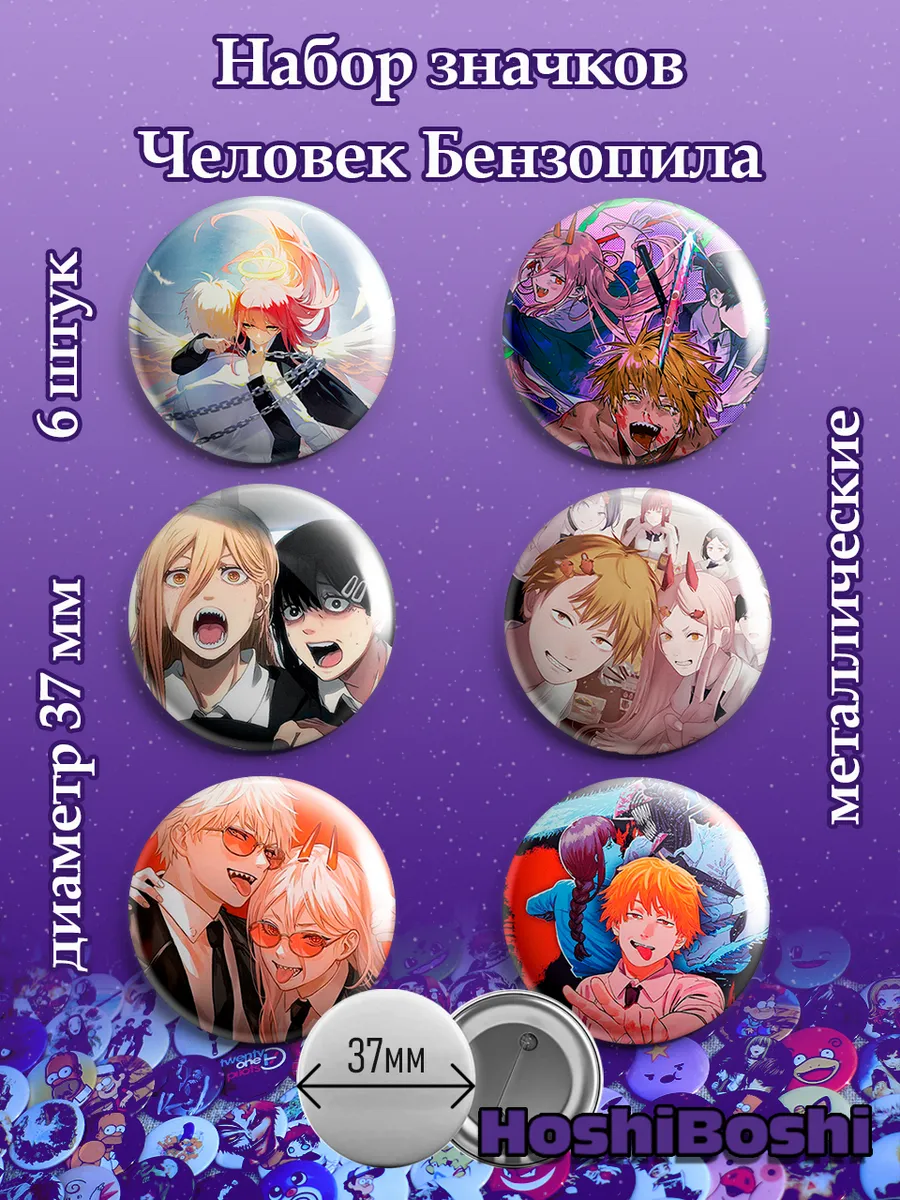 Набор из 6 металлических значков с изображениями из аниме Человек Бензопила ( Chainsaw Man ).