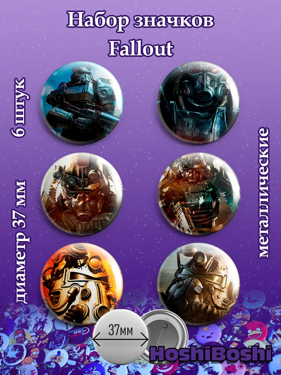 Набор из 6 металлических значков с изображениями из вселенной Фаллаут ( Fallout ).
