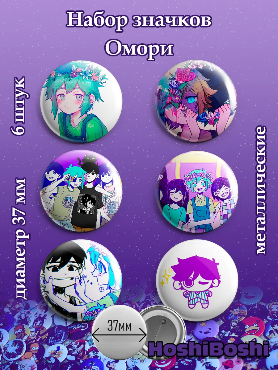 Набор из 6 металлических значков с изображениями из игры Омори ( Omori ).