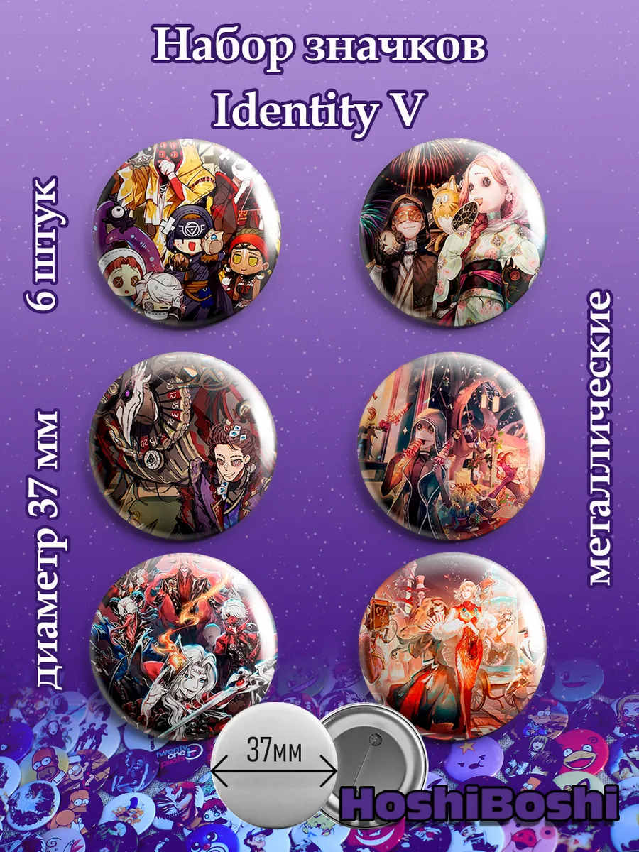 Набор из 6 металлических значков с изображениями из игры Идентити Файф ( Identity V ).