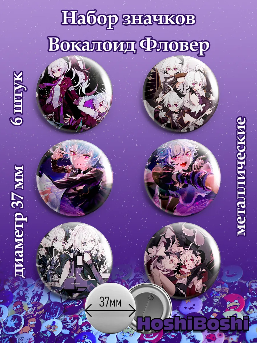 Набор из 6 металлических значков с изображениями Вокалоидов ( Vocaloid ).
