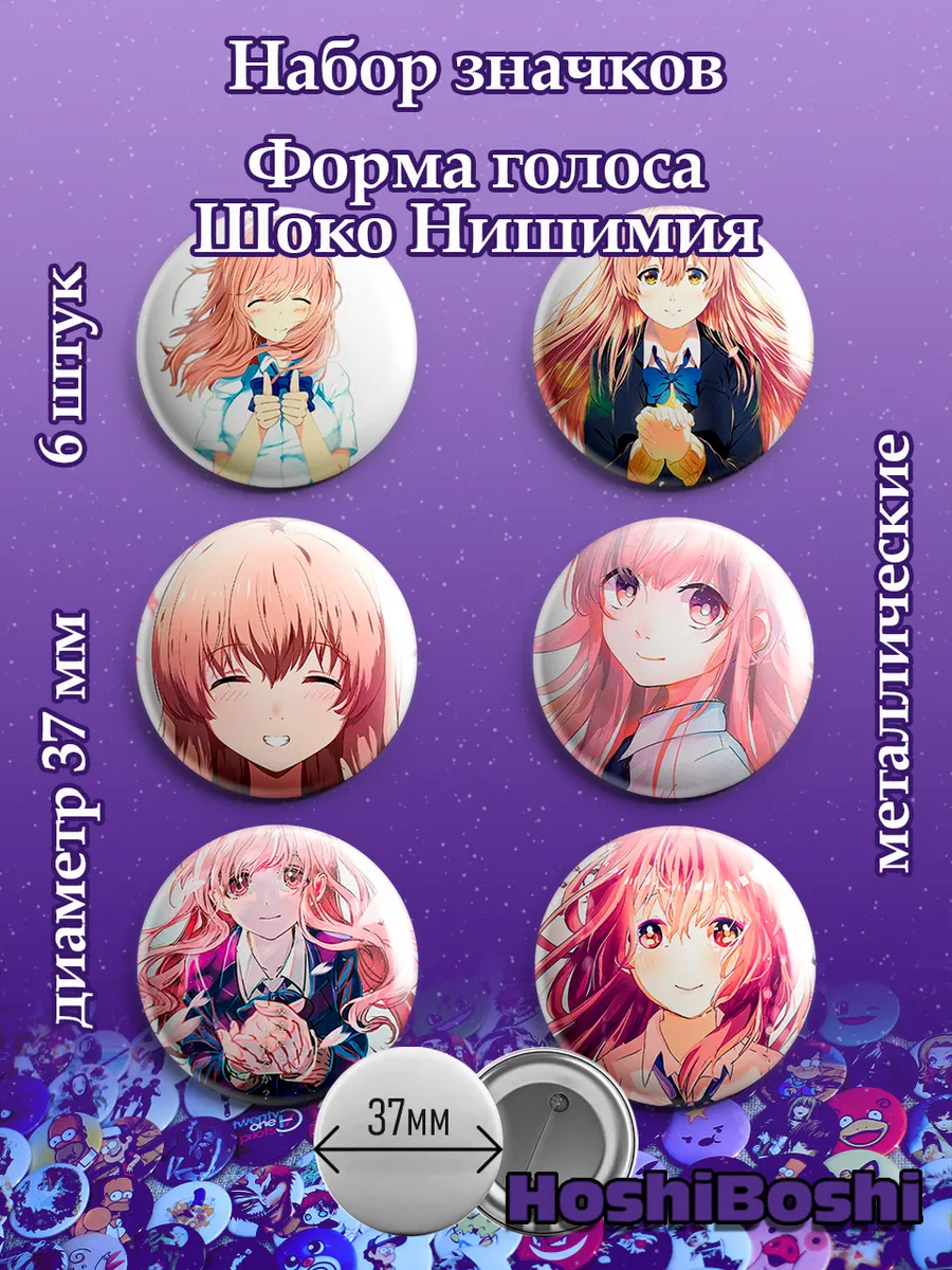 Набор из 6 металлических значков с изображениями из аниме Форма голоса ( Koe no katachi A Silent Voice ).