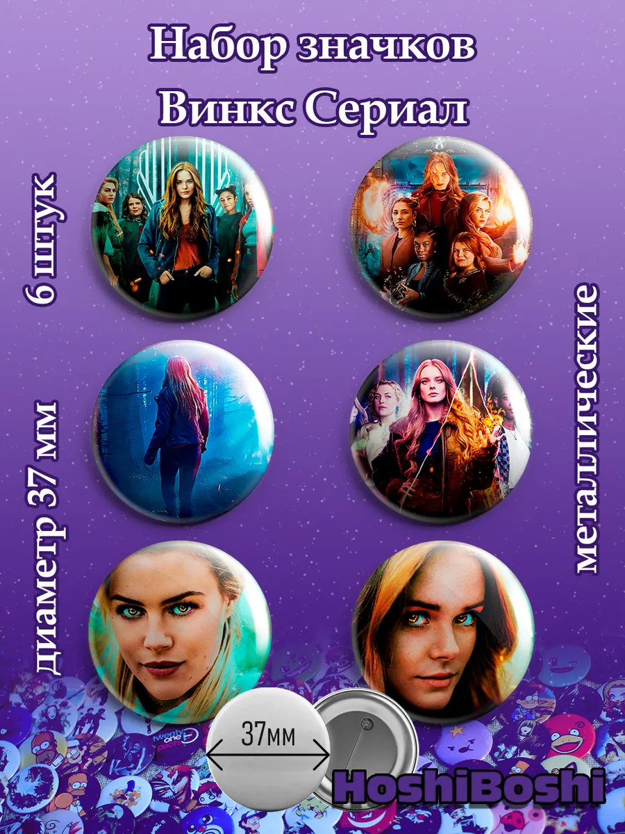 Набор из 6 металлических значков с изображениями из сериала Судьба: Сага клуба Винкс ( Fate: The Winx Saga ).