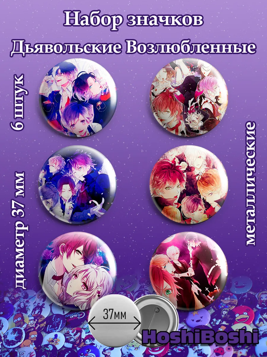 Набор из 6 металлических значков с изображениями из аниме Дьявольские Возлюбленные ( Diabolik Lovers ).