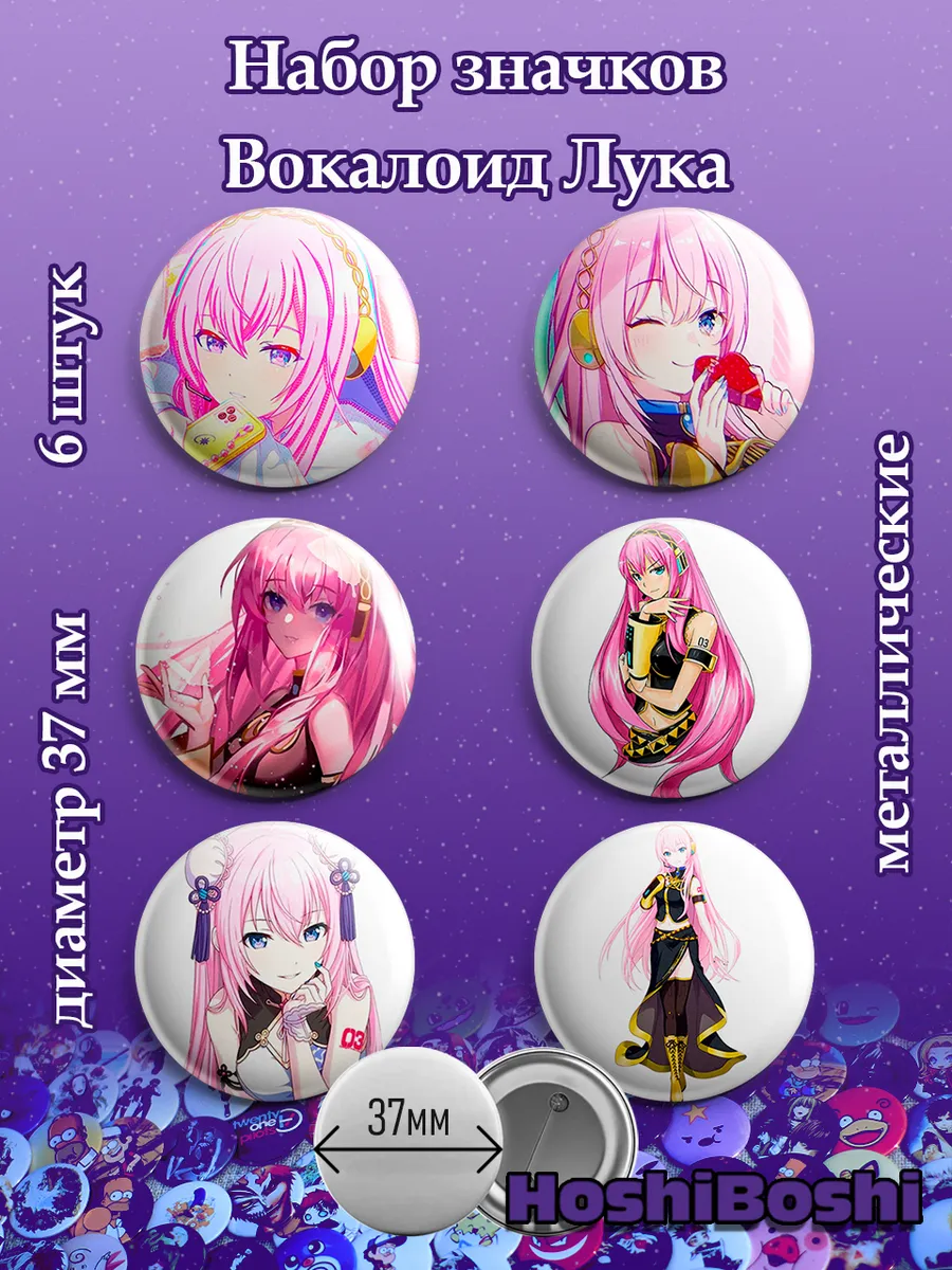 Набор из 6 металлических значков с изображениями Вокалоидов ( Vocaloid ).