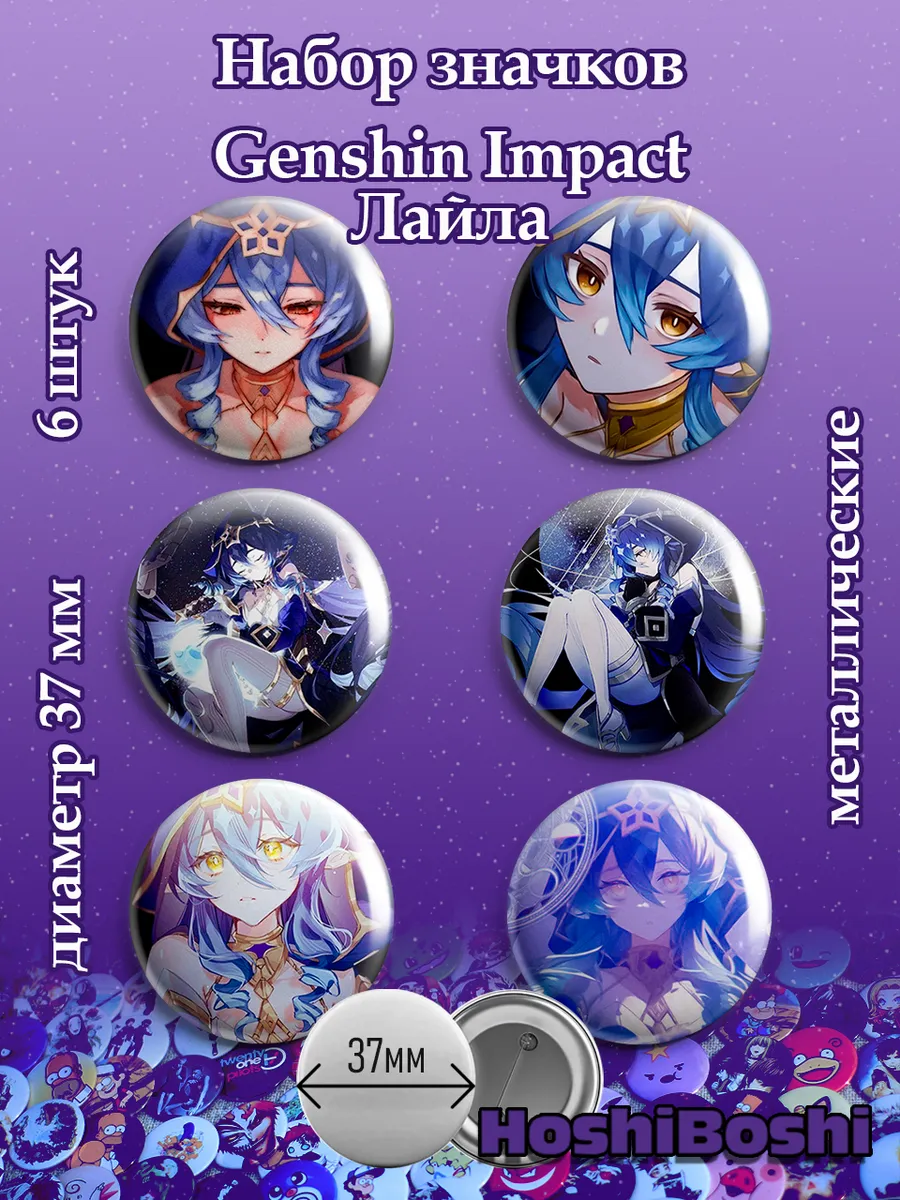 Набор из 6 металлических значков с изображениями из игры Геншин Импакт ( Genshin Impact ).