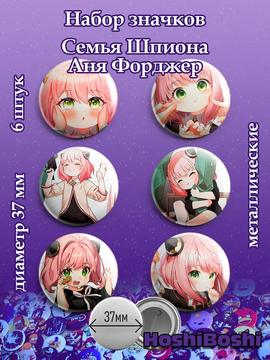 Набор из 6 металлических значков с изображениями из аниме Семья шпиона ( Spy × Family ).