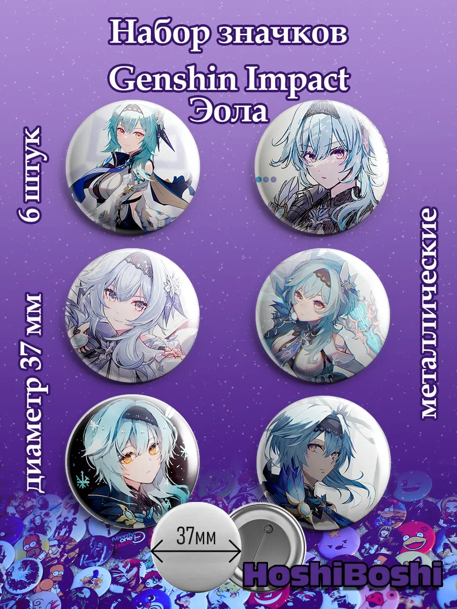 Набор из 6 металлических значков с изображениями из игры Геншин Импакт ( Genshin Impact ).