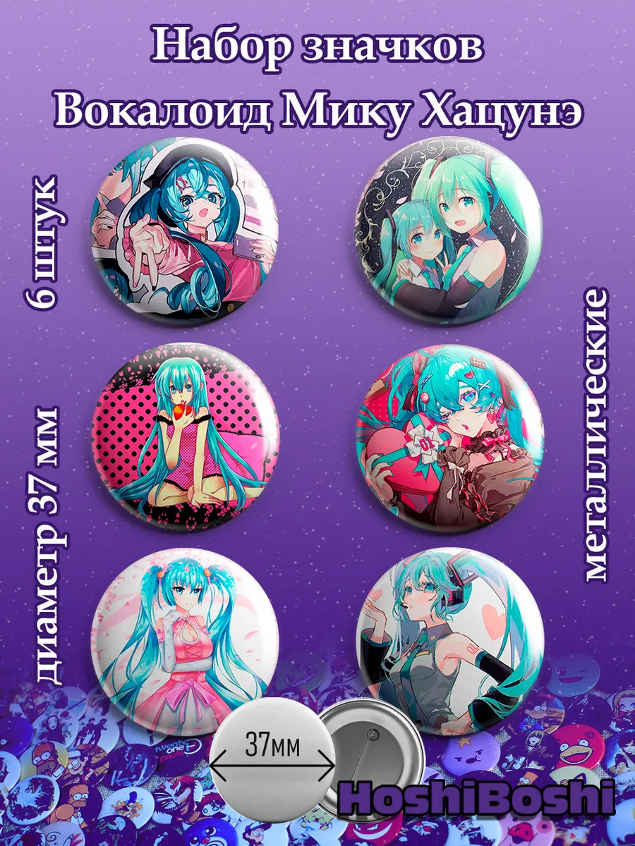 Набор из 6 металлических значков с изображениями Вокалоидов ( Vocaloid ).