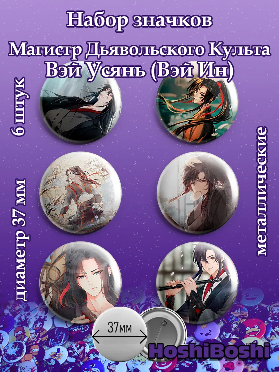 Набор из 6 металлических значков с изображениями из аниме Магистр Дьявольского Культа ( Mo Dao Zu Shi ).