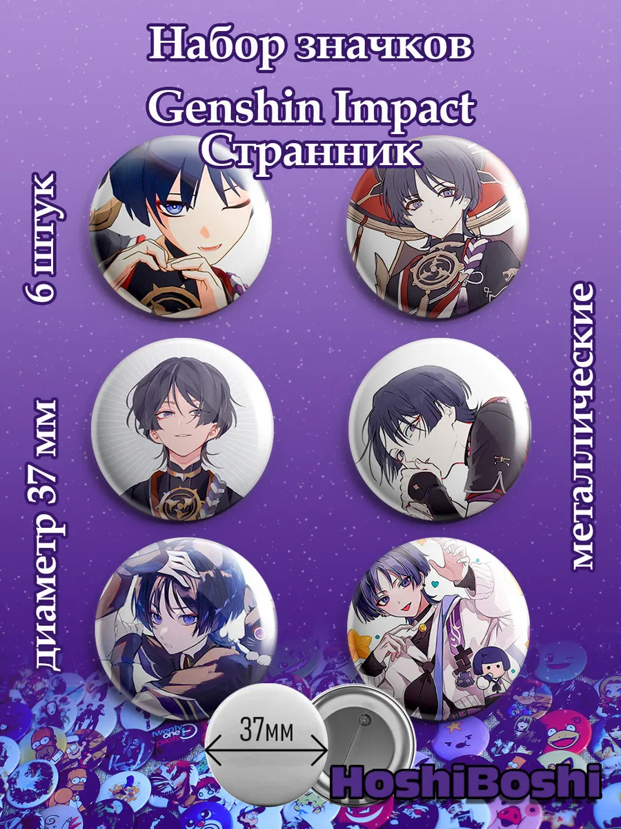 Набор из 6 металлических значков с изображениями из игры Геншин Импакт ( Genshin Impact ).
