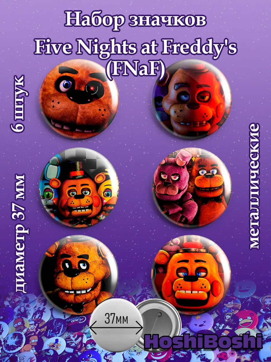 Набор из 6 металлических значков с изображениями из игры Пять ночей с Фредди ( Five Nights at Freddy's (FNaF) ).
