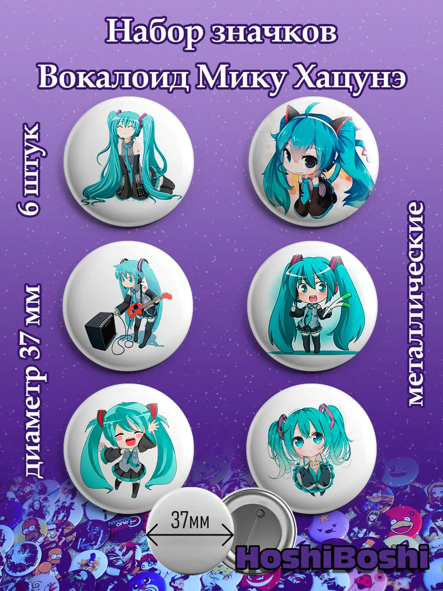 Набор из 6 металлических значков с изображениями Вокалоидов ( Vocaloid ).