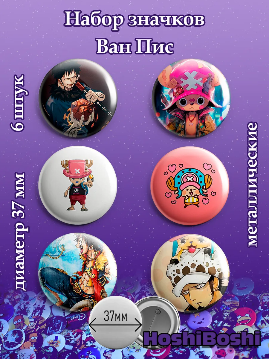 Набор из 6 металлических значков с изображениями из аниме Ван Пис ( One Piece ).