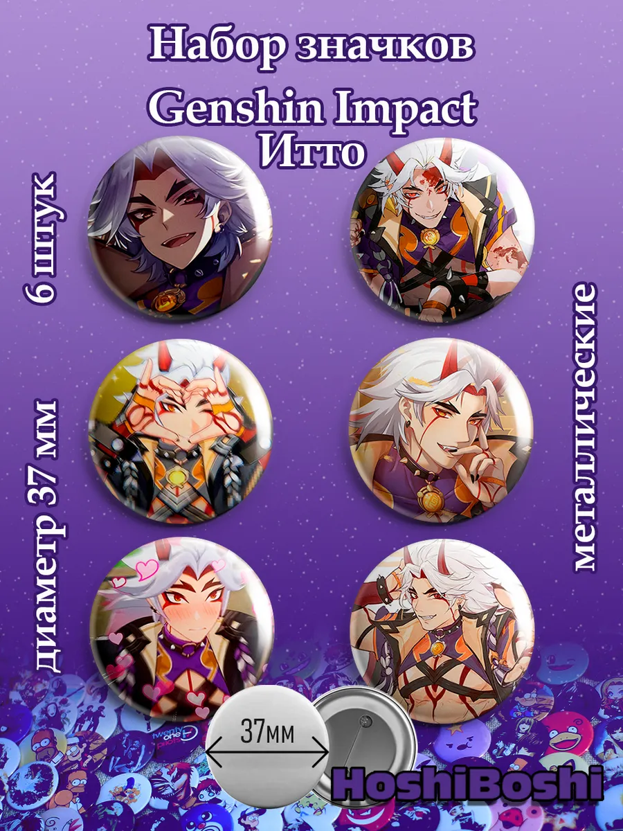 Набор из 6 металлических значков с изображениями из игры Геншин Импакт ( Genshin Impact ).