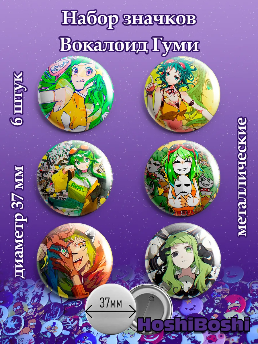 Набор из 6 металлических значков с изображениями Вокалоидов ( Vocaloid ).