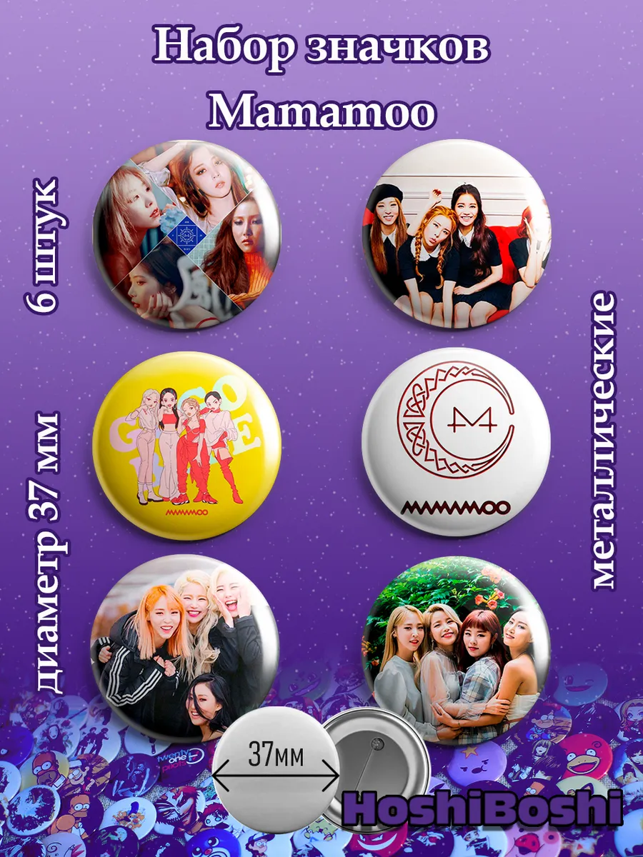 Набор из 6 металлических значков с изображениями с Кей-Поп группой Маммаму ( Mamamoo ).