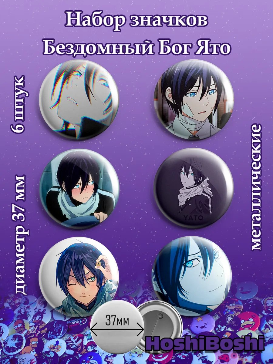 Набор из 6 металлических значков с изображениями из аниме Бездомный Бог ( Noragami ).
