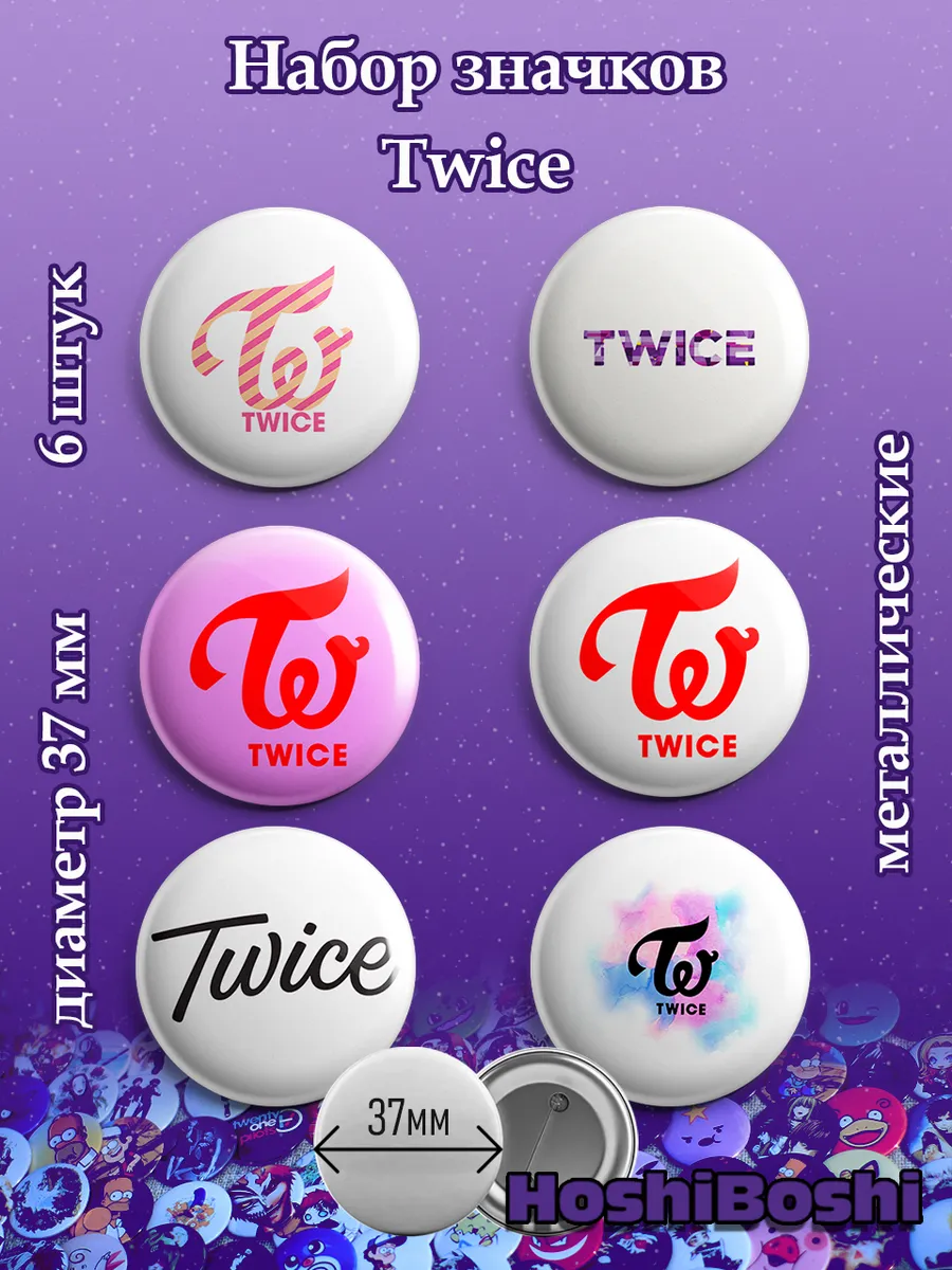 Набор из 6 металлических значков с изображениями Кей-поп группы Твайс ( Twice ).