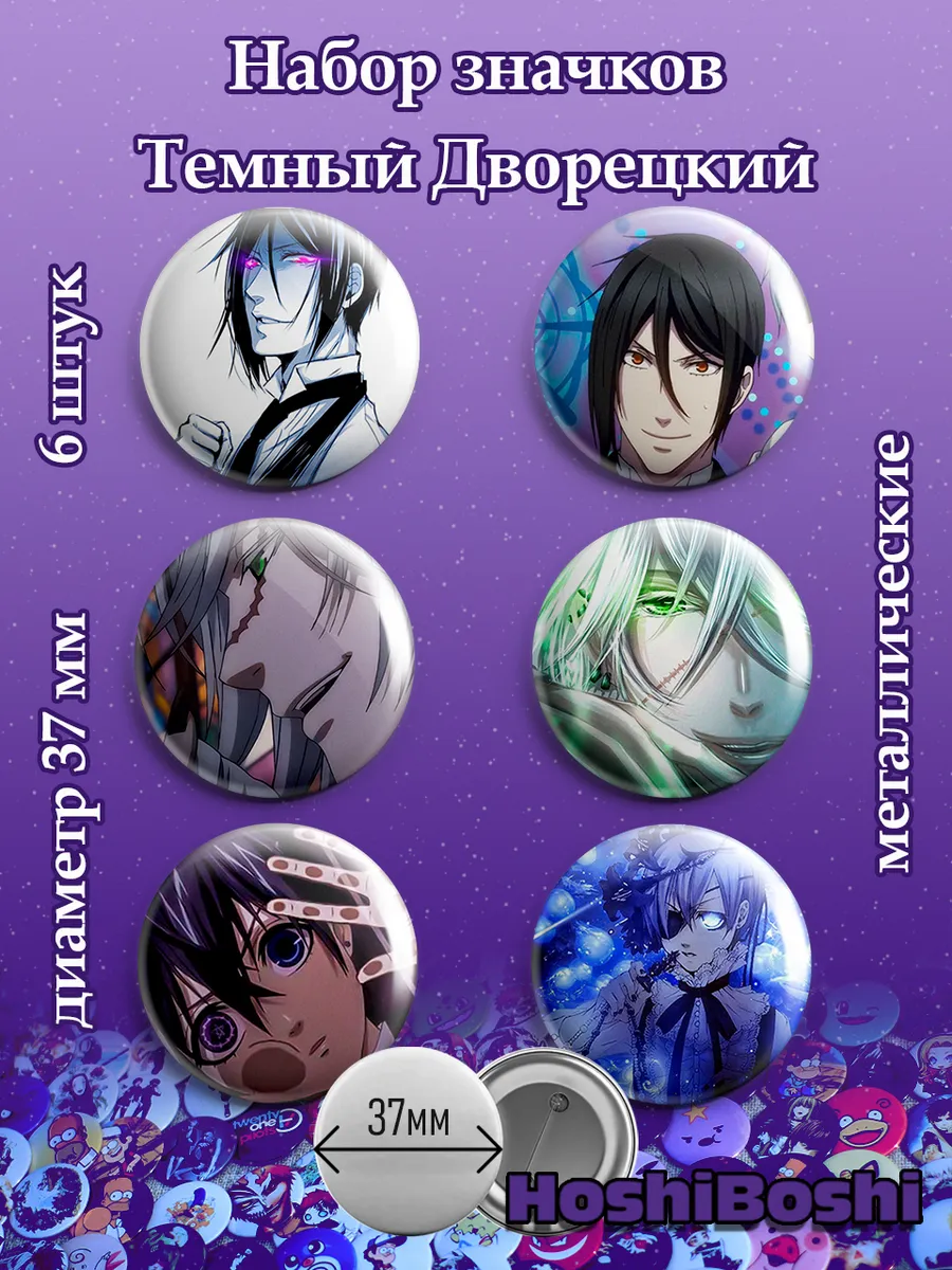 Набор из 6 металлических значков с изображениями из аниме Темный дворецкий ( Kuroshitsuji Black Butler ).