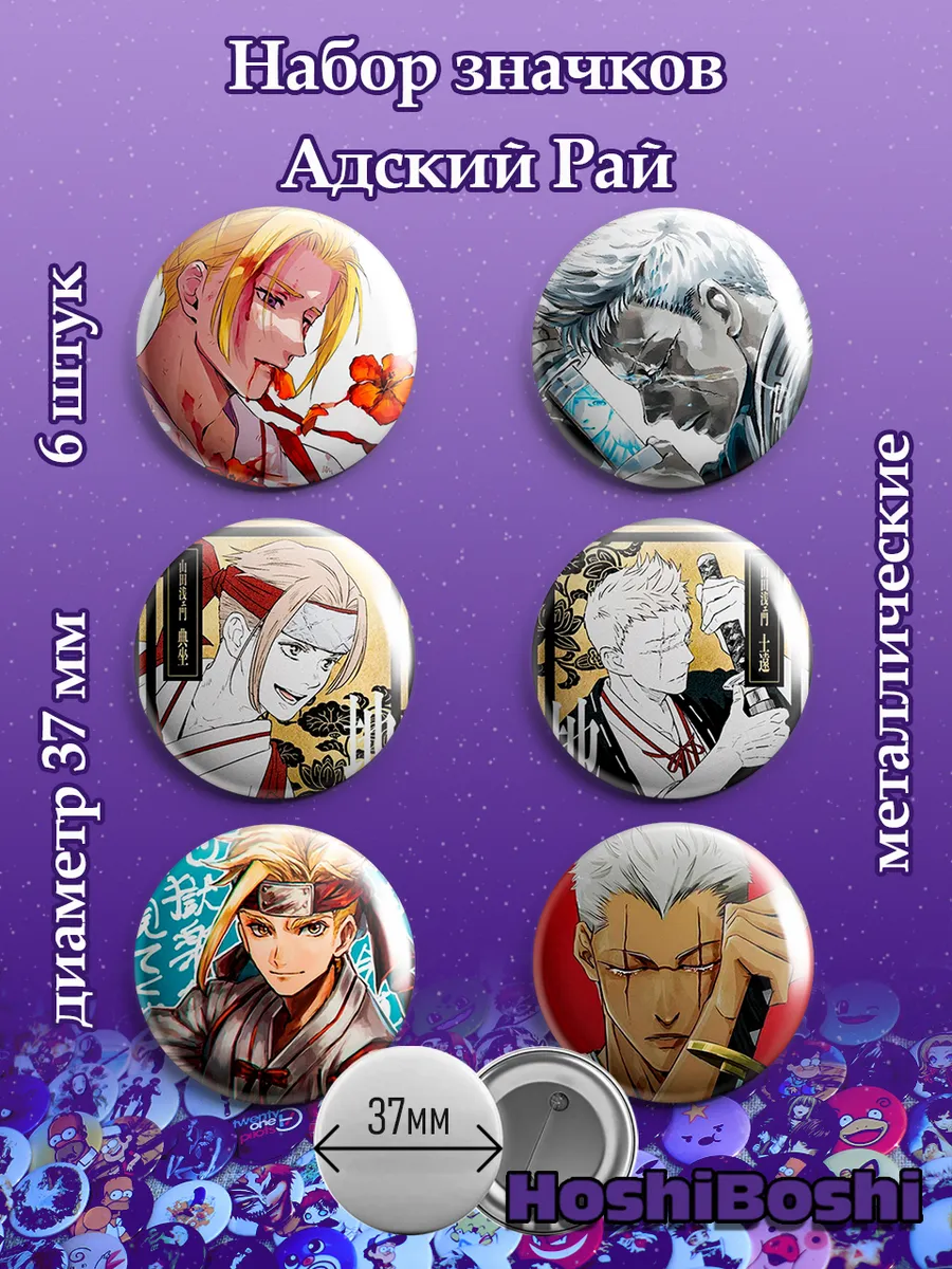 Набор из 6 металлических значков с изображениями из аниме Адский Рай ( Hell's Paradise: Jigokuraku ).