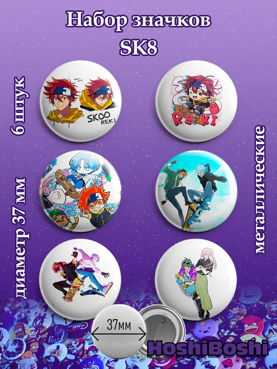 Набор из 6 металлических значков с изображениями из аниме Скейт в бесконечность СК8 ( SK8 the Infinity ).