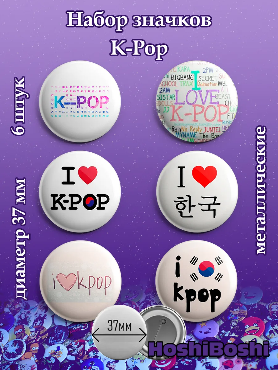 Набор из 6 металлических значков с изображениями Кей-Поп ( K-pop ).