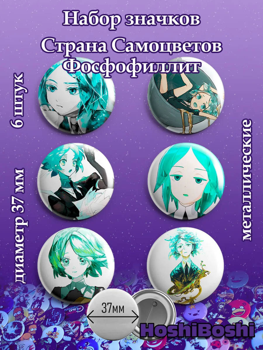 Набор из 6 металлических значков с изображениями из аниме Страна самоцветов ( Houseki no Kuni ).