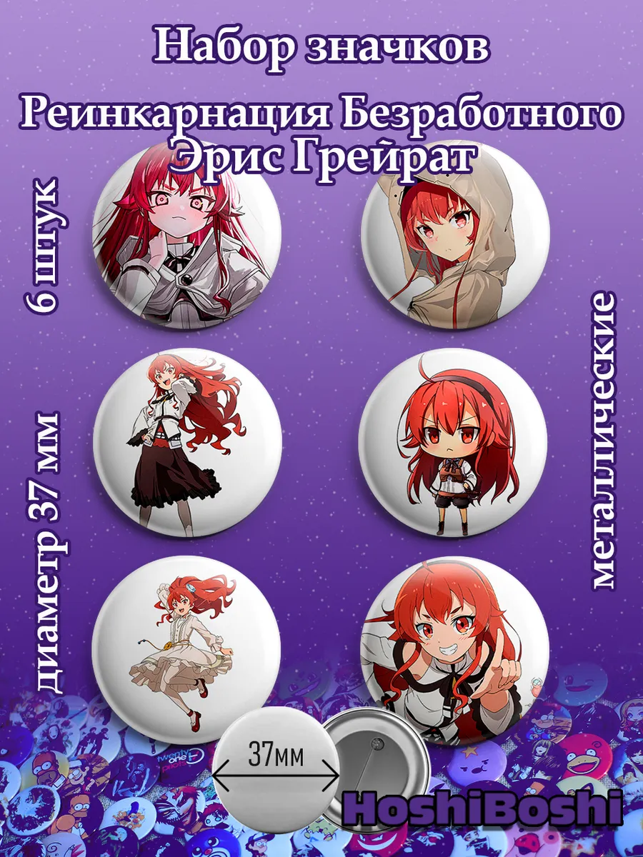 Набор из 6 металлических значков с изображениями из аниме Реинкарнация безработного ( Mushoku Tensei ).