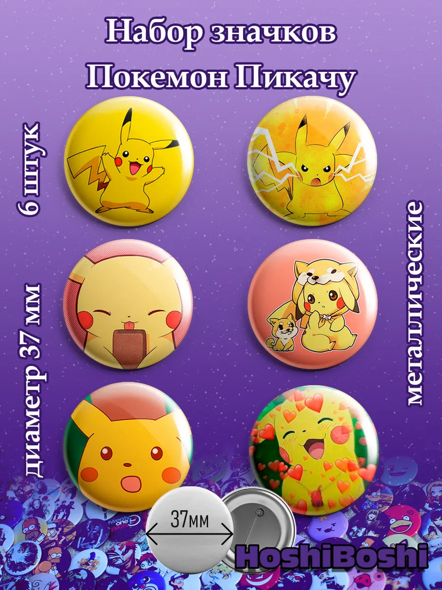 Набор из 6 металлических значков с изображениями из аниме Покемон ( Pokémon ).