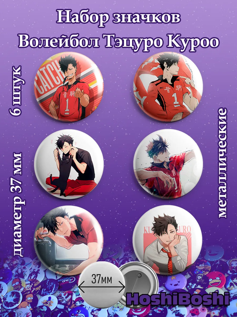 Набор из 6 металлических значков с изображениями из аниме Волейбол ( Haikyu!! ).