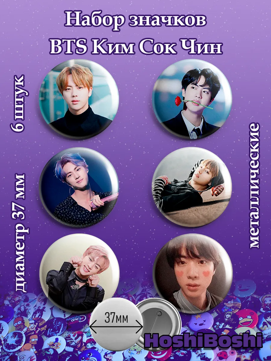 Набор из 6 металлических значков с изображениями с Кей-Поп группой БТС ( BTS ).